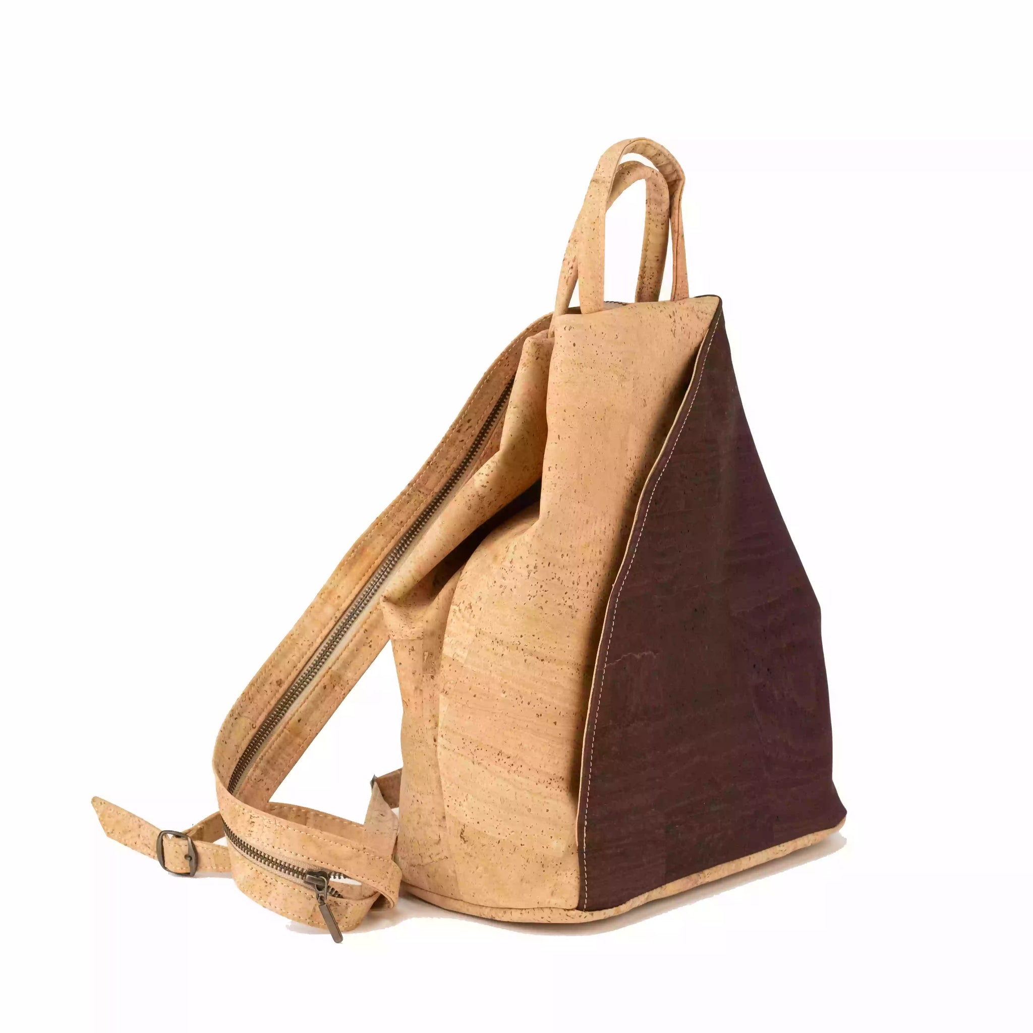 natural and brown cork Convertible Backpack Shoulder Bag - side view